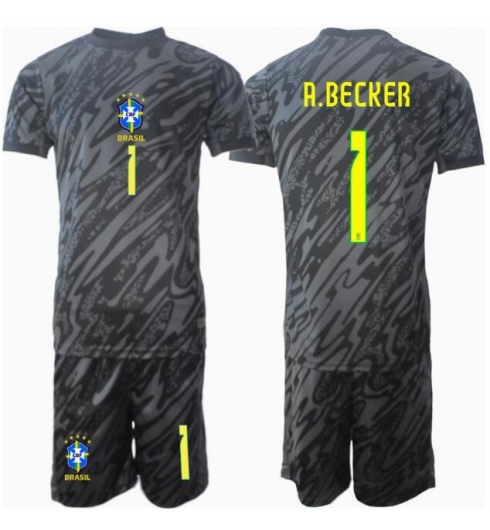 Brazilië Alisson Becker #1 Keeper Uit tenue Kids Copa America 2024 Korte Mouwen (+ broek)