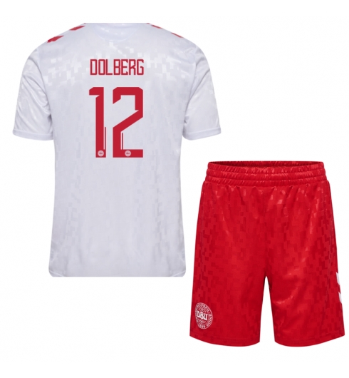 Denemarken Kasper Dolberg #12 Uit tenue Kids EK 2024 Korte Mouwen (+ broek)
