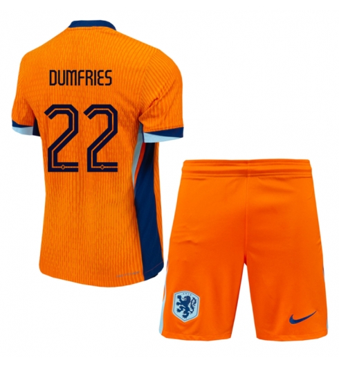 Nederland Denzel Dumfries #22 Thuis tenue Kids EK 2024 Korte Mouwen (+ broek)