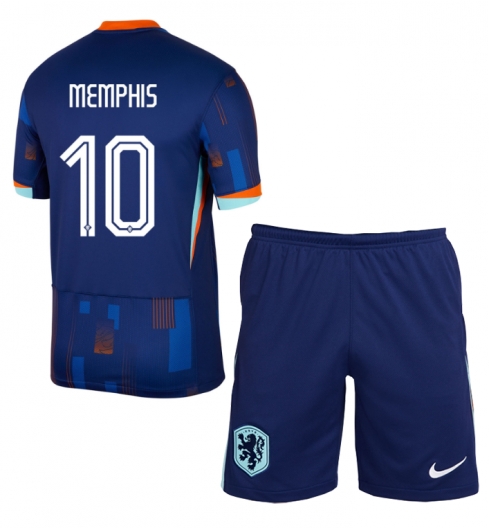 Nederland Memphis Depay #10 Uit tenue Kids EK 2024 Korte Mouwen (+ broek)