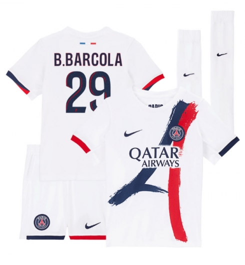 Paris Saint-Germain Bradley Barcola #29 Uit tenue Kids 2025-26 Korte Mouwen (+ broek)